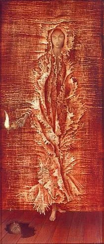 “She showed a way to penetrate mystery; which means, not to flood darkness with light so that darkness is destroyed, but to enter into darkness, mystery, so that it is experienced. And by darkness I don’t mean evil; not evil but the Other Side, the Hiddenness before which man must shed his arrogance; Sea out of which the first creeping thing and Aphrodite emerge; Cosmos in which the little speck of the earth whirls and in the earth ‘the dandelion seed’.”